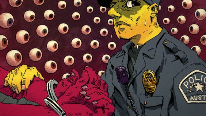 Buehler went to the local media with the video, the photos, and his account, and they picked up the story. After it ran on multiple channels, as well as in the newspaper, Buehler began getting calls and emails from other Austinites who felt they’d been mistreated by the police. A defense fund was set up for him and the woman whose arrest had been the catalyst. Buehler, who was teaching at a private school outside of Austin at the time, began to think seriously about whether there was a larger and longer-term role for him as a police reform activist. Not long after his arrest, he became a cop-watcher.